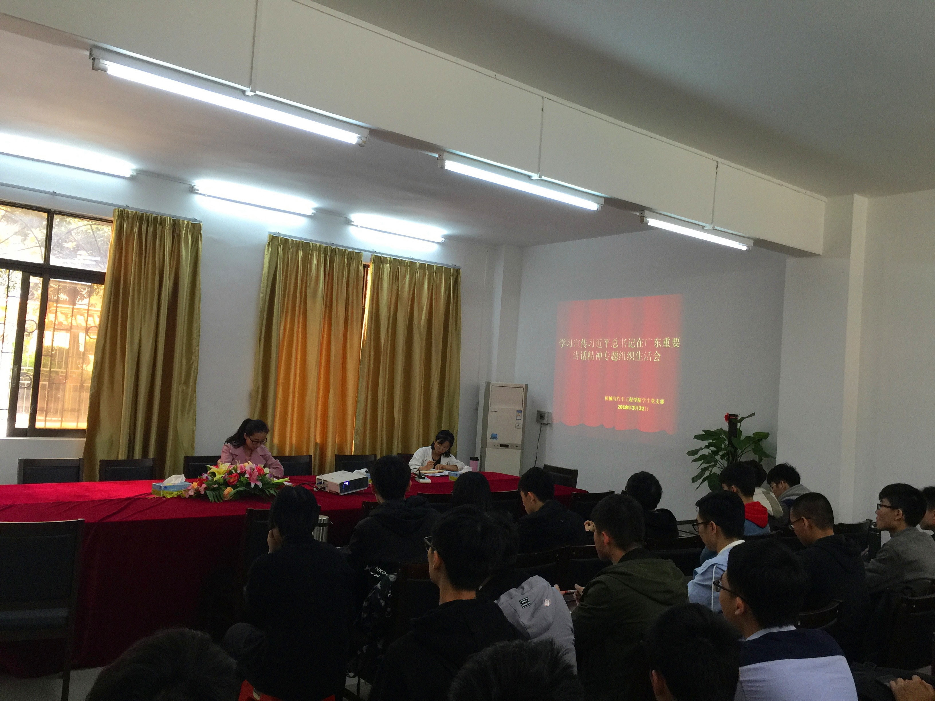 2018年3月22日中午12:00,我院学生党支部在实验大楼223会议室召开了学习宣传习近平总书记在广东重要讲话精神专题组织生活会。