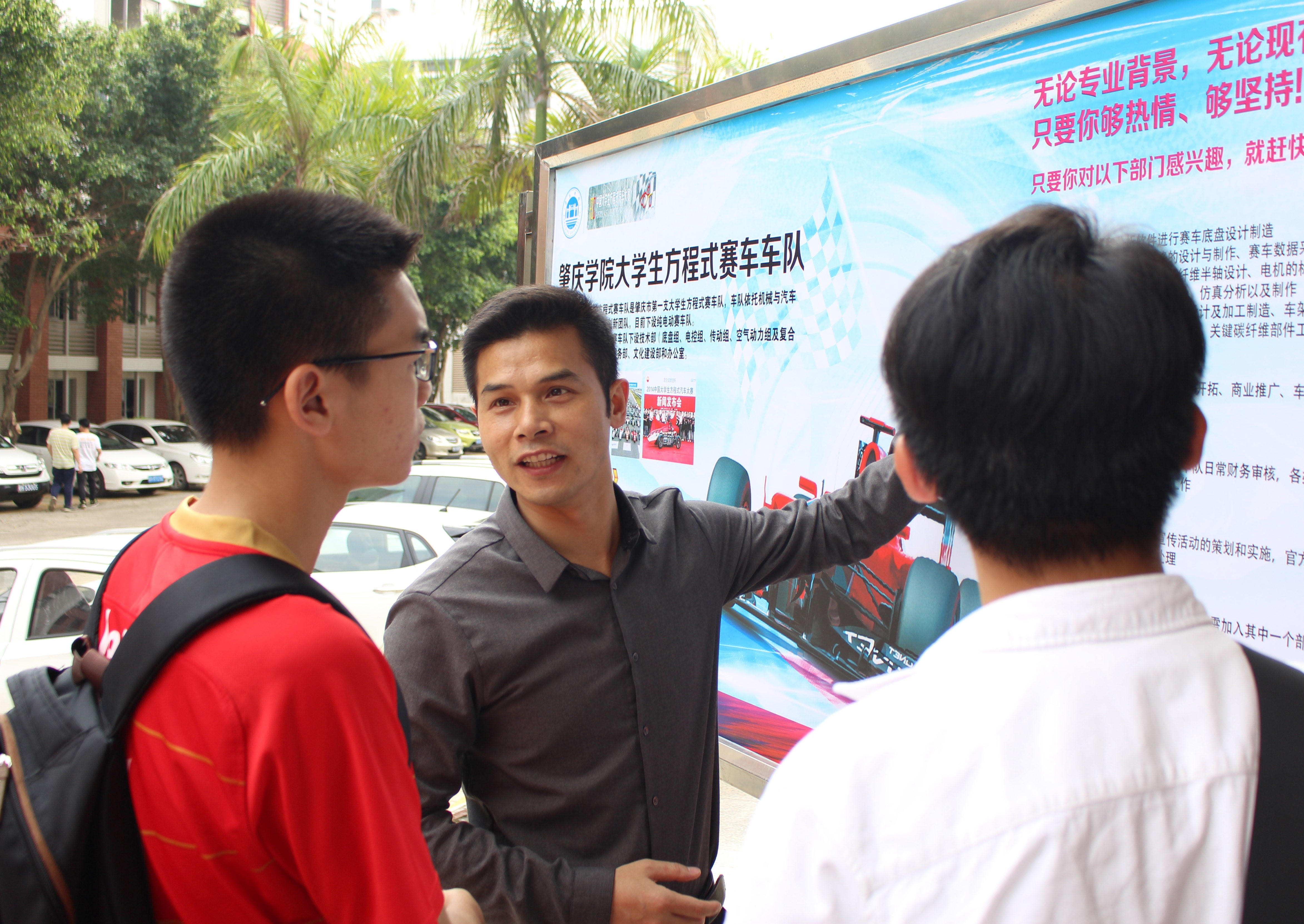本网讯(通讯员 张子杰)为发扬大学生科技创新精神,促进学生创新意识,为车队吸纳学校英才,3月30号下午,由william威廉中文官网主导的肇庆学院大学生方程式赛车车队在学校实验大楼一楼开展了车队招募工作,学院党委书记田华、副教授李剑英、辅导员周瑛以及车队主要学生干部参与了本次活动。
