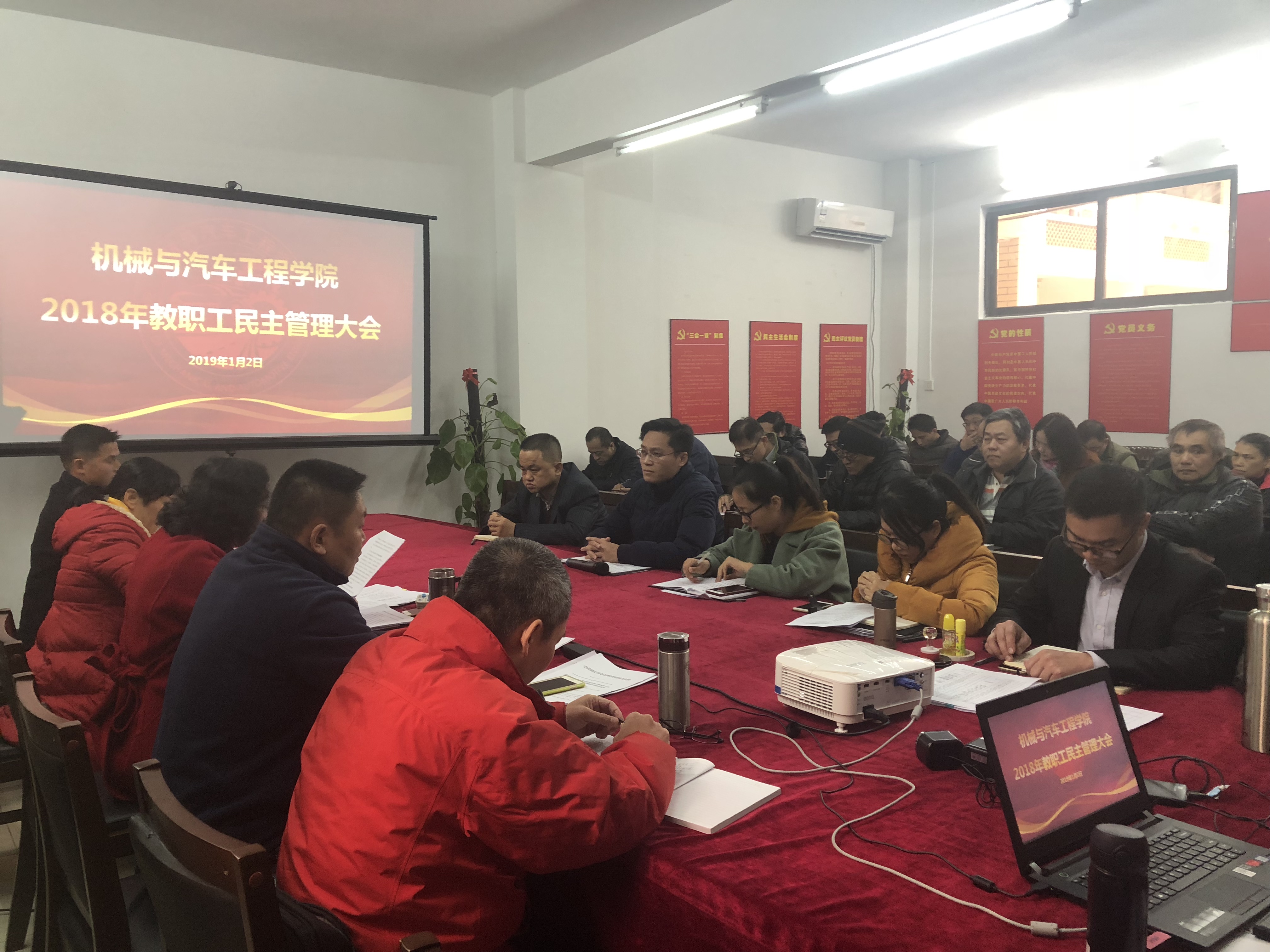 1月2日,我院在实验大楼120会议室召开2018年教职工民主管理大会。学院党政领导班子、校工会办公室主任肖燕以及我院全体教职员工出席了本次大会,会议由我院党委书记田华主持。