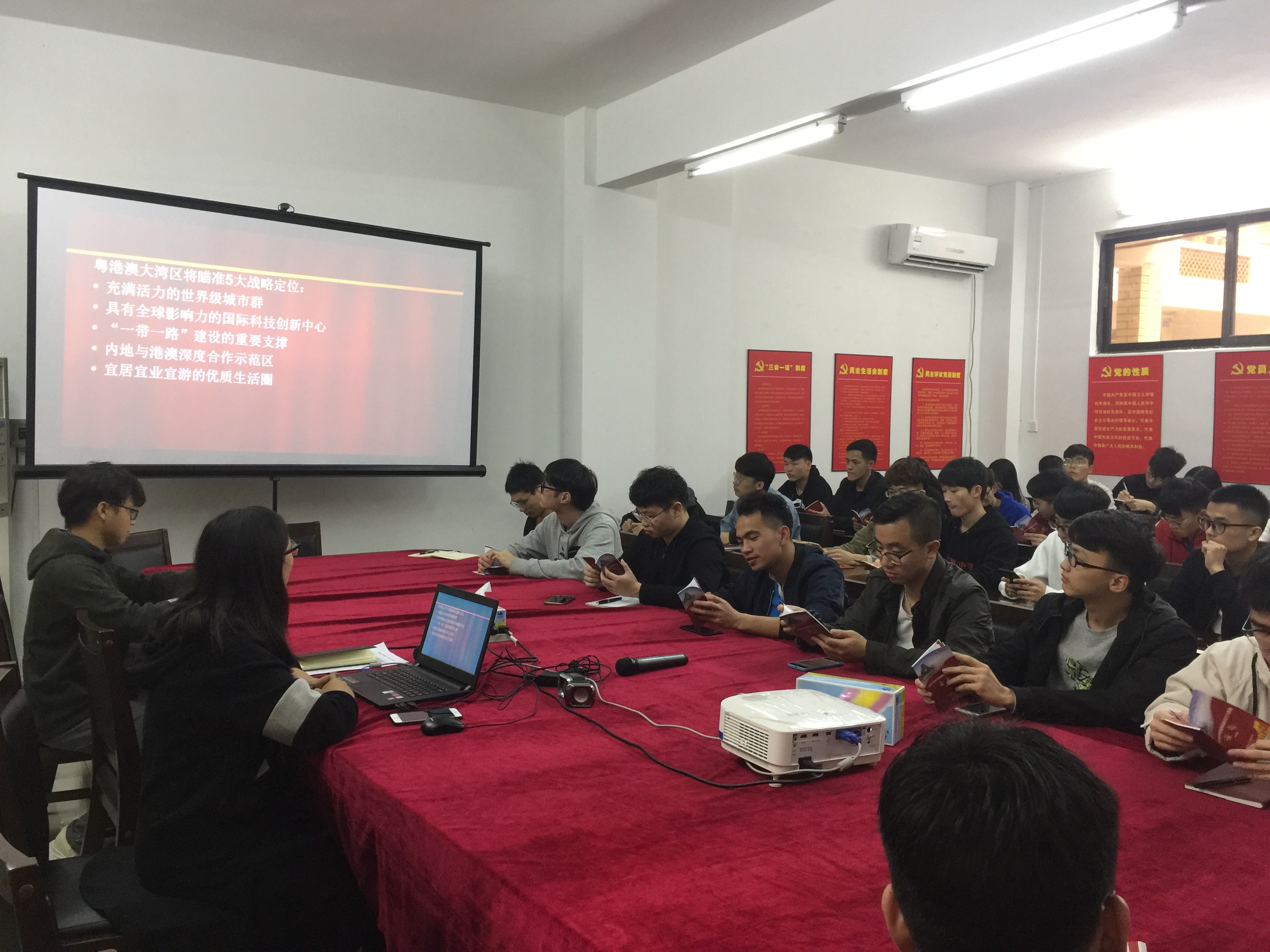 接着,张娜又带领大家学习了2月27日省委书记李希关于粤港澳大湾区和广东重要精神讲话,并通过肇庆市2019年相关职能部门目标清单帮助大家认识、了解肇庆市政府工作新动态和机械、车辆工程专业的就业前景,鼓励大家切实增强粤港澳大湾区的政治责任和历史使命,发奋图强贡献自己的一份力量。