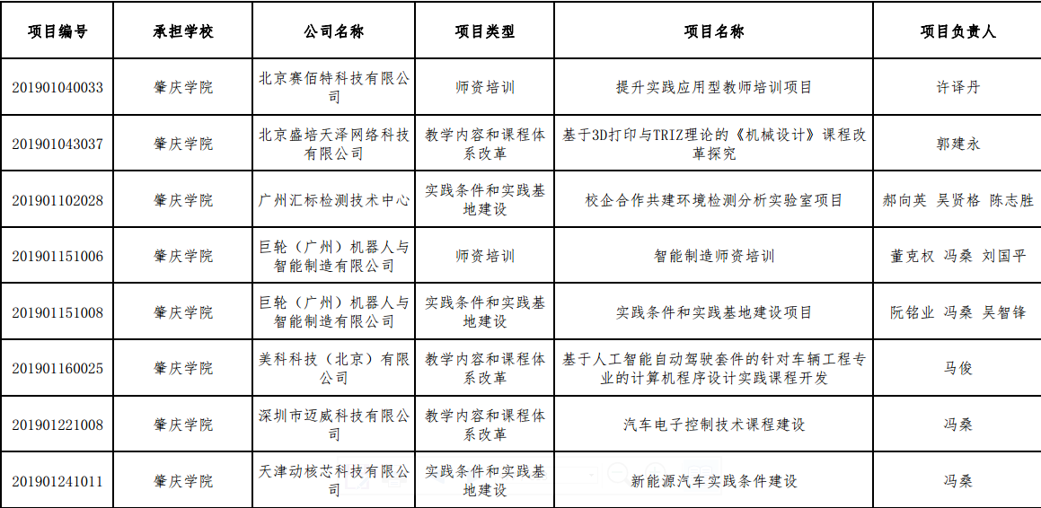 教育部产学合作协同育人项目,是国家为了本科人才培养质量,深化产教融合、校企合作,教育部高等教育司组织有关企业支持高校共同开展产学合作协同育人的项目。由企业与高校联合进行教学内容和课程体系改革、师资培训以及实践环境的建设,合作建设联合实训室、实践基地,提升学校专业实践环境,共同开发有关的教学资源,提升学校实践教学水平。