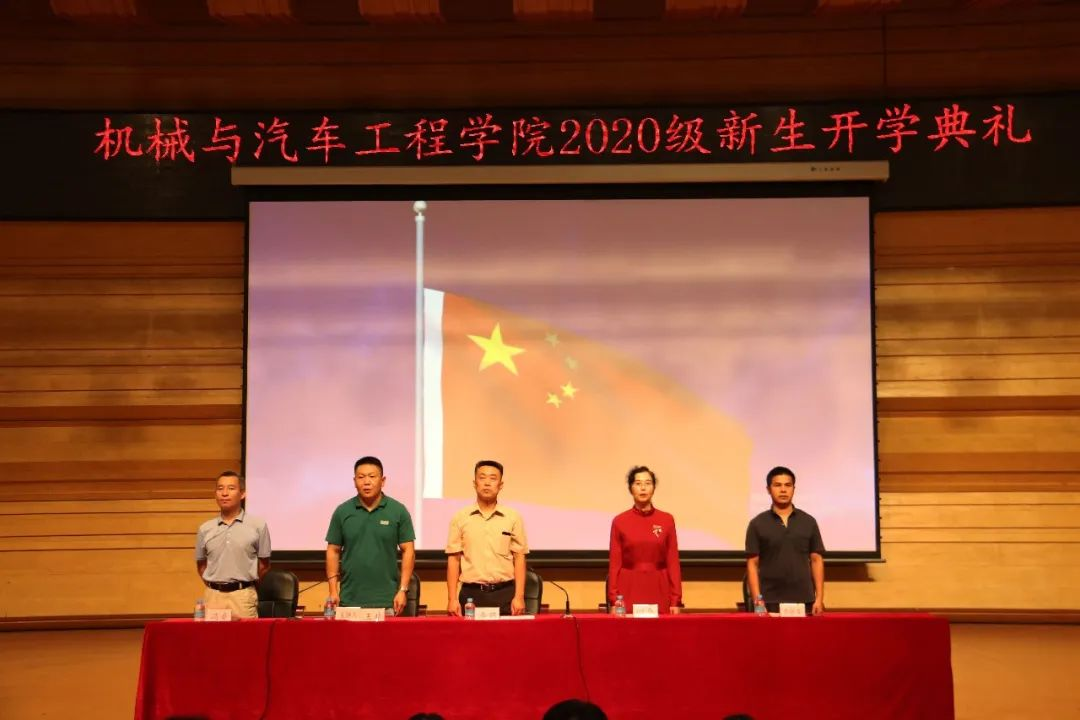 典礼伊始,全体师生唱响了《中华人民共和国国歌》。激昂的歌声饱含了师生对伟大祖国的热爱,对未来美好生活的憧憬,也体现出了2020级新生铿锵自信和斗志昂扬的精神风貌。