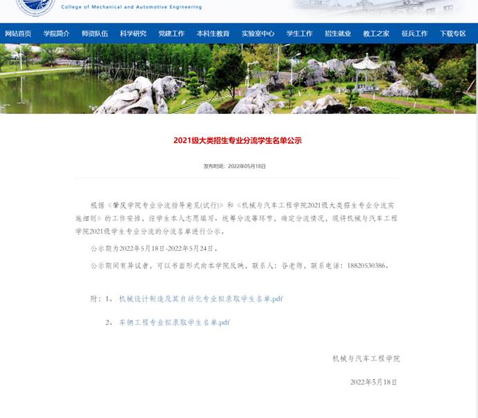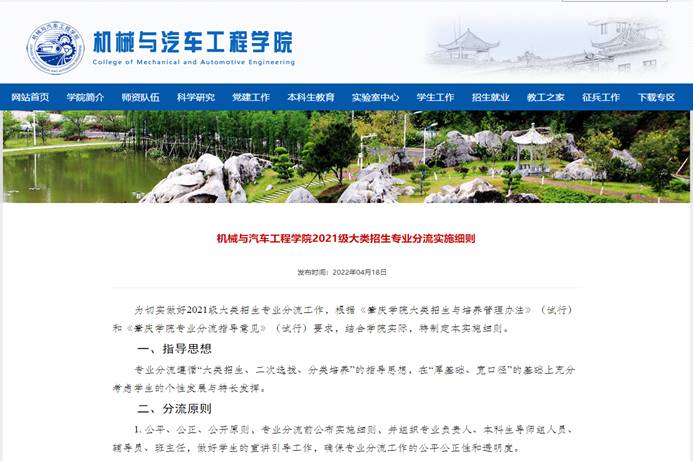 近日,随着大类招生专业分流名单公示的结束,我院2021级学生专业分流工作圆满完成。今年是我院第二年实行机械类大类招生与培养,参加专业分流的2021级本科生高达602人,是去年专业分流人数的近6倍,分流后,机械设计制造及其自动化专业学生288人,车辆工程专业学生314人,按照学生的志愿录取。