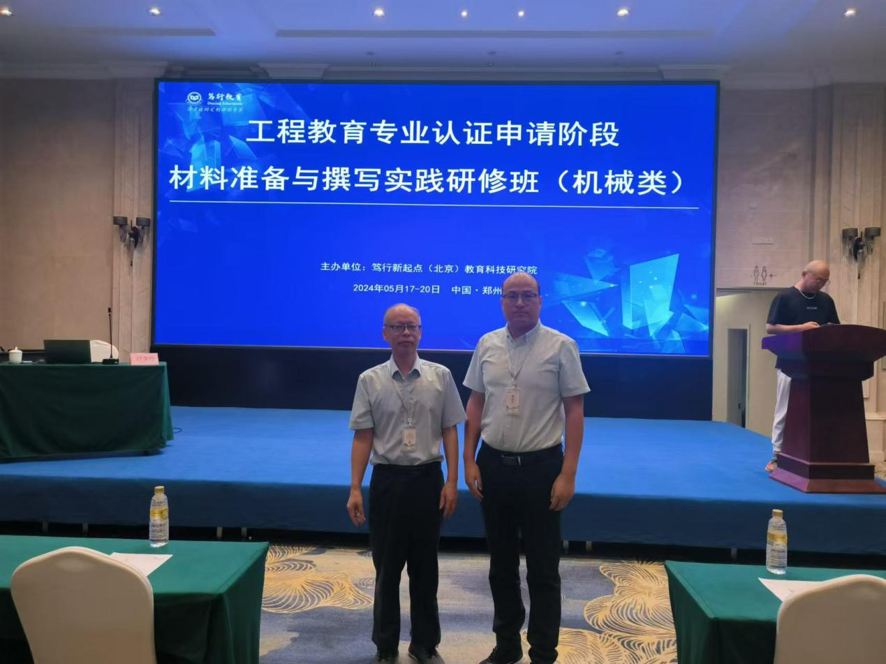 2024年5月17日-19日,工程教育专业认证申请阶段材料准备与撰写实践研修班(机械类)在郑州召开。我院机械系主任董克权,副主任杜尊令参加了此次培训。