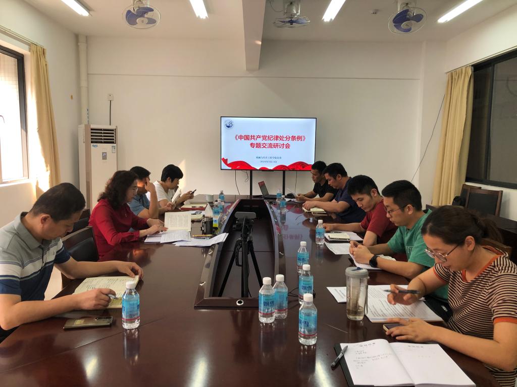徐秋涛带领大家学习了《条例》第1-6章,从《条例》修订背景、重要意义、修订前后对照以及贯彻落实要求等方面提出三点学习感受:提高政治站位,领会新修订《条例》的重大意义,提高思想认识;加强学习,增强纪律意识、规矩意识,做到知行合一;履行纪检工作职责,把清各类风险点并融入到日常工作中、做好提醒。最后,办公室副主任李进华,辅导员、机械系学生党支部书记曾宇飞,辅导员、车辆系学生党支部书记陈家泓,辅导员刘帅君、张娜、邓梅权结合工作实际交流学习感悟,分享心得体会。大家纷纷表示,今后要继续结合岗位职责持续深入学习贯彻《条例》,带头守纪,以更加规矩规范的姿态,为学院发展建设提供坚强保证。