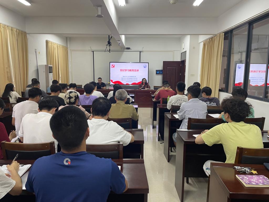 2024年5月29日下午,学校党纪学习教育宣讲人、马克思主义学院骨干教师张家冀为我院师生党员、党员发展对象作题为《严明纪律教育 推进党的自我革命——<中国共产党纪律处分条例>内容解读》的专题宣讲,学院党委书记田华主持。