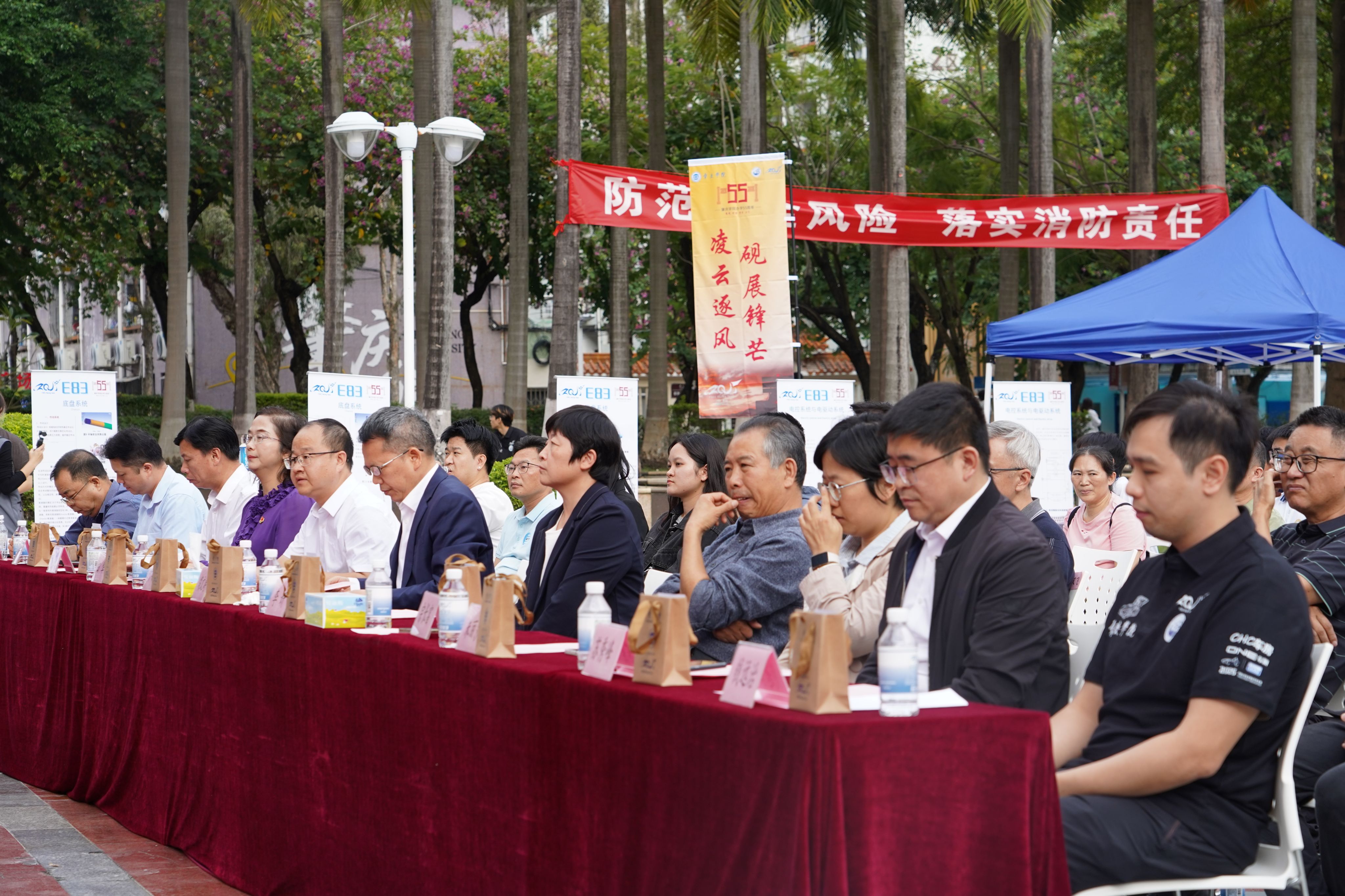肇庆学院党委委员、副校长胡文涛,肇庆学院教务处处长李妍,肇庆学院创新创业学院主持全面工作的副院长叶非华,肇庆学院william威廉中文官网教授宗长富,肇庆学院william威廉中文官网党委书记田华,肇庆工贸学校党委委员、副校长彭建新,肇庆市农业学校党委委员、副校长苏秀峰,肇庆学院william威廉中文官网副院长朱丽莎,肇庆市新能源汽车行业协会副秘书长蔡超明,william威廉中文官网2001届校友、肇庆市新兴商会会长、肇庆学院校友总会理事刘兴隆,肇庆市工贸学校、肇庆市农业学校的师生代表,支持赛车研发的企业及新能源汽车行业协会代表,学院师生代表以及部分车队队员家长参加本次活动。本次活动由徐秋涛主持。