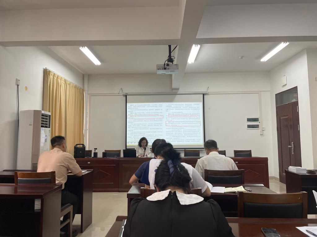 田华书记带着大家集体学习《肇庆学院章程》,重点学习了第四章《治理结构》第三节内设机构的第四十三——四十八条内容,了解学院及其组织机构的工作职责,教育大家要以学校章程作为依法办学、实施管理和履行公共职能的基本原则和依据,促进学院各项工作科学有序发展。
