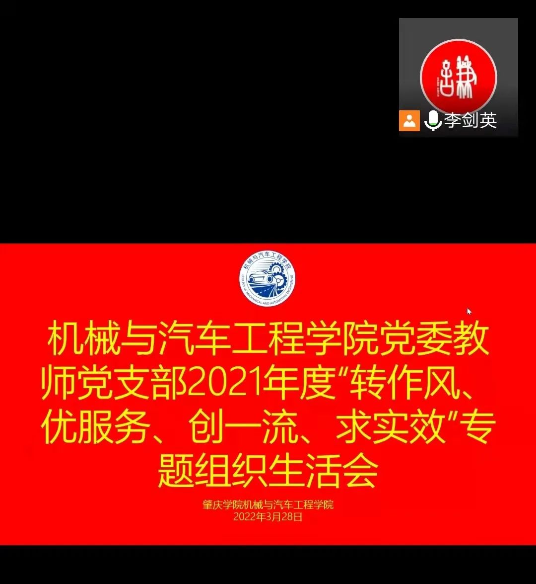 3月28日前后教师党支部、机械系学生党支部、车辆系学生党支部采取线上和线下相结合的方式召开2021年度“转作风、优服务、创一流、求实效”专题组织生活会和民主评议党员大会。