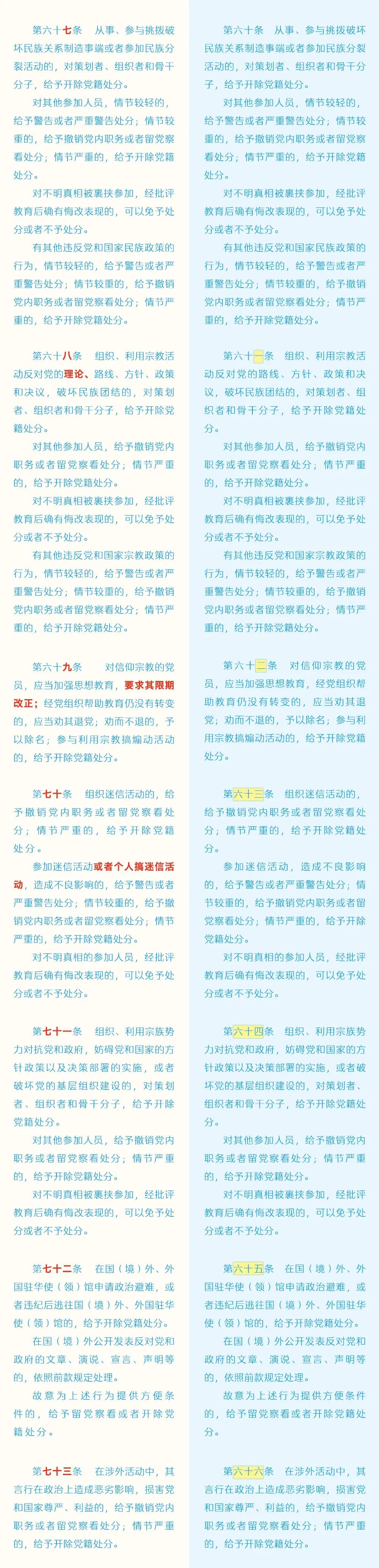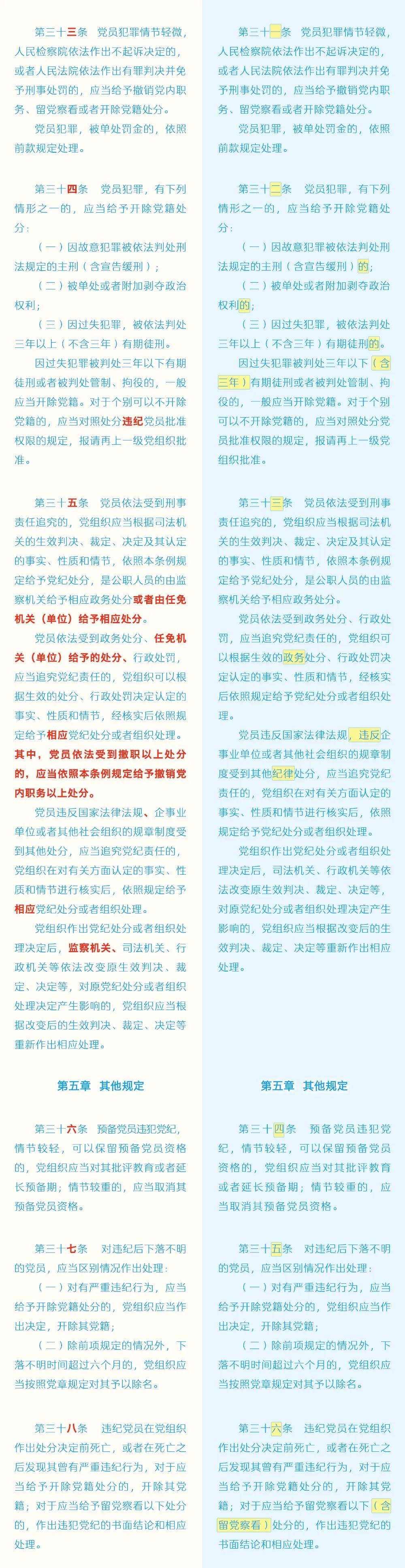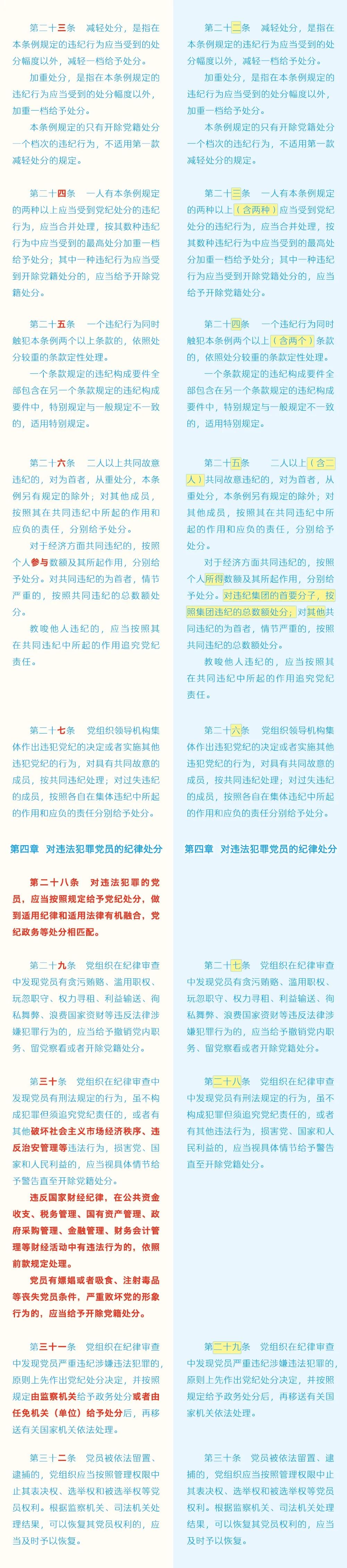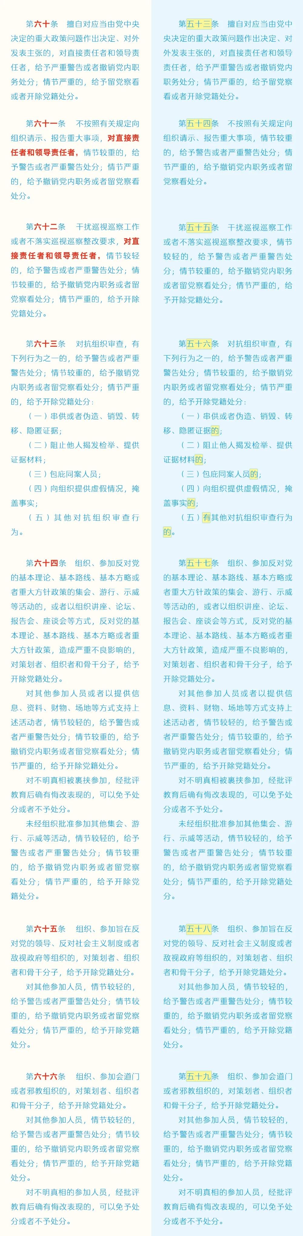 《中国共产党纪律处分条例》修订条文对照表
