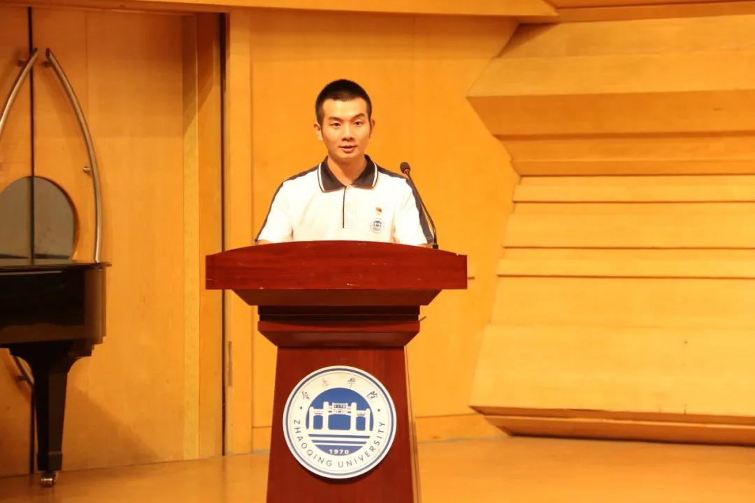 2017级机械设计制造及其自动化1班刘顺兴作为旧生代表进行发言。他首先对大家的到来表示欢迎,并指出大学比起高中有了更多的选择,同学们应好好利用学校及学院给予的各类资源,努力提升自我,在未来的竞争中脱颖而出。