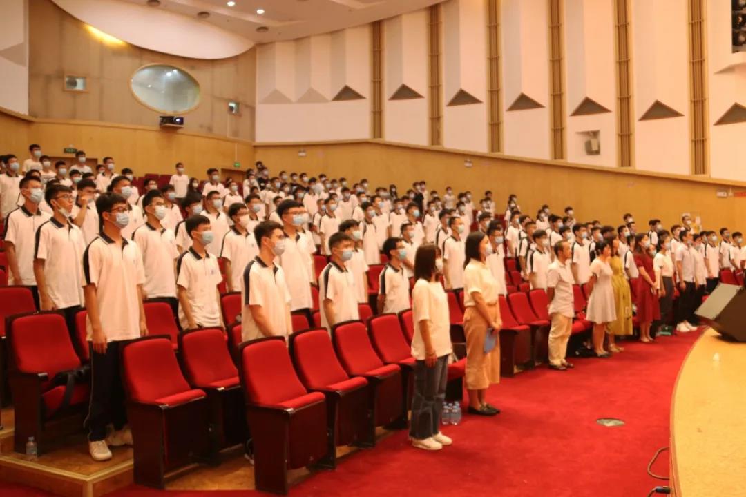 典礼伊始,全体师生唱响了《中华人民共和国国歌》。激昂的歌声饱含了师生对伟大祖国的热爱,对未来美好生活的憧憬,也体现出了2020级新生铿锵自信和斗志昂扬的精神风貌。