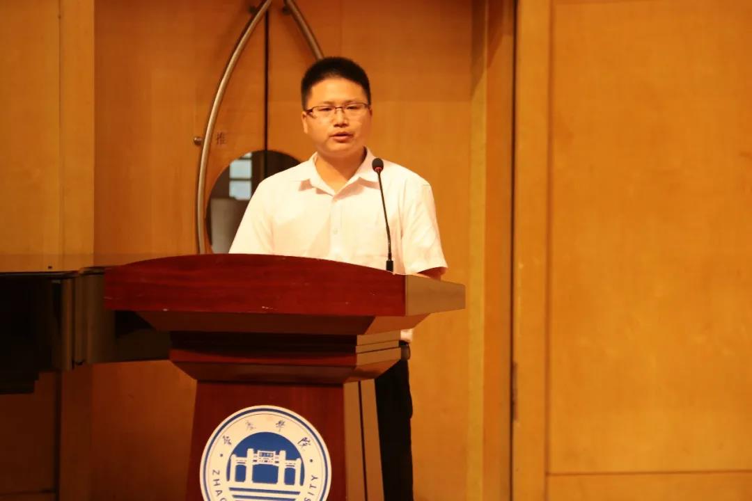 学院专任教师王海博士作为教师代表发言。面对人生的新阶段,他建议同学们在大学四年的学习生涯中,要学会认知、学会做事、学会共同生活、学会生存,鼓励同学们从被动转变到主动,学会创造性地学习,用每一天的点滴行动为实现梦想助力。